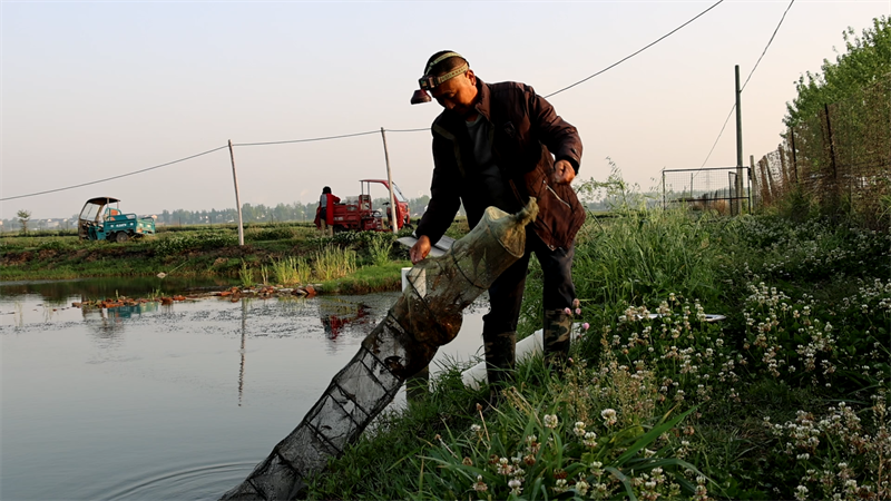 4ÔÂ20ÈÕ£¬ÔÚСºÓÕòʯ»Ò´åÒ»´¦µ¾Ïº¹²Ñø»ùµØ£¬¼¸ÃûϺũÕý´©ËóÔÚµ¾Ìï±ß£¬½«Ìáǰ·ÅÖõÄÏºÍø´ÓϺÌïÀÌÆð£¬Ò»Ö»Ö»ÏÊ»îµÄСÁúϺ±»²¶ÀÌÉϰ¶¡£
