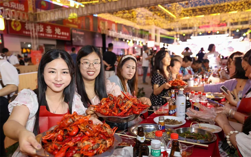 “香飘高康 寻味宜城”楚都美食街开街暨楚都美食季以“香”为主题,巧妙地将嗅觉体验融入每一处细节。走进高康美食街,青砖灰瓦的仿古建筑与霓虹灯牌交相辉映,空气中弥漫着诱人的香气。这里汇聚了宜城最地道的风味:红亮诱人的“宜城大虾”藏着荆楚饮食的豪迈,焦香扑鼻的“盘龙鳝”带着浓郁的乡土气息,金黄酥脆的“腊肉粑粑”裹着温热的浓浓乡愁,一碗浓情蜜意的葛根粉和着母亲河汉江的甘甜,一杯楚贡美酒酿出农耕文明的醇厚……整个美食街飘散的菜香、茶香、酒香、葛根香,每一种香都像是一把钥匙,打开了关于宜城记忆的匣子:宜城,是一座有着2800多年建城史的楚文化名城。千百年来,南北交汇的宜城,将千年楚味融会贯通、八方美食兼收并蓄,形成了一套独特的烹饪手法及地方风味,逐渐引领鄂西北的饮食风尚,楚文化的厚重底蕴与八方风味的独特魅力完美融合,又孕育出了独具特色的饮食文化。从鲜香四溢的宜城大虾,到酥嫩可口的干炸仔鸡,再到风味独特的盘龙鳝……每一道美食都承载着楚地儿女的智慧结晶,每一口滋味都诉说着千年古城的文化传承。老字号摊位前,非遗美食现场展示古法技艺,不断翻涌的香气不仅体现了宜城地方特色,更彰显了匠人的智慧与心血;现代创意展位则以直播带货的方式,将本地食材的香气用语言和视频解构重组,带来耳目一新的味觉冲击。无论是古朴还是新潮,香气始终是串联起宜城过去与未来的纽带。