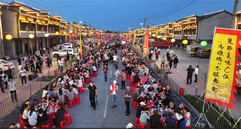 “寻味”二字,在琳琅满目的美食中得到了完美诠释。小河镇高康村农家乐从最早的几家到如今的32家,32家特色餐饮店焕然一新,星级农家乐与地道美食相得益彰,昔日的“美食长廊”蝶变为今天的“美食地标”,正逐步成为宜城市一张亮丽的名片,吸引着八方游客慕名而来,共同见证这场由舌尖到心尖的旅行。高康美食街口街口的招牌菜"盘龙鳝",源自《楚辞》中"肴蒸兮兰藉"的宴饮礼仪,厨师以古法剔骨留形,鳝段盘曲如青铜器上的蟠螭纹;转角"张家食府"的腊肉粑粑,选用本地土猪,腌制技艺可追溯至明清漕运繁盛时期,每一口咸香都带着汉水文化的江湖记忆。游客行走在美食街,可以循着楚式屋脊的凤鸟纹饰漫步,用眼神绘就“宜城美食舆图”,舌尖品味的不仅是食物,更是一部立体的宜城编年史。美食赶大集,赶的是人间烟火、集的是乡情记忆,赶的是浓厚的人情味、集的是淳朴的民风,以美食作笔勾勒出甜蜜的童年记忆;美食街巡演,许多市民漫步在街中,被阵阵飘来的香气吸引驻足,或是品尝特色小吃,或是与亲友分享美食,欢声笑语回荡在古色古香的街道上,每一道菜品都像是宜城城乡风味的“密码本”,在游乐和巡演中加深对宜城饮食文化的理解。一场以楚国宫廷礼仪为核心的文化盛宴——《楚王宴》大型情景剧更是在此次开街活动中华丽上演,通过沉浸式舞台表演、文物复原展示与互动体验,生动再现了楚王宴饮的恢弘场景,带领游客穿越千年,感受荆楚文明的璀璨与礼仪之邦的风范。美食在此不再是简单的果腹之物,而是承载了历史与情感的叙事载体。