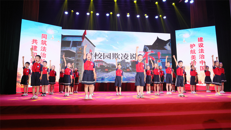 演出在气势恢宏的舞蹈《大展宏图》中拉开序幕。震撼人心的情景剧《向校园欺凌说“不”》、悠扬的合唱《烟火气的民法典》、节奏明快的快板舞《法院铁军谱新篇》、声情并茂的朗诵《法之光,照亮归途》、幽默诙谐的小品《违建风波》、展现家国情怀的独唱 《祖国你好》等节目轮番上演,巧妙地将法治元素融入文艺节目中,使大家在艺术熏陶中深化法治认知,实现“润物无声”的普法效果。