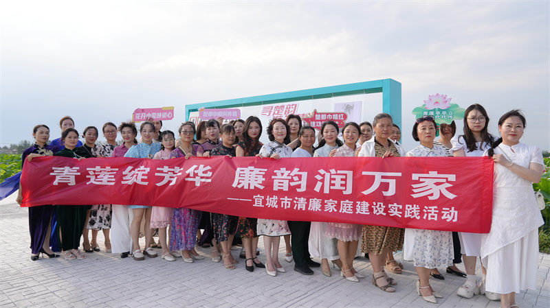 在荷花基地,层层荷叶间缀满姿态各异的荷花,美不胜收。莲花,出淤泥而不染。活动在宣读《家庭助廉倡议书》中拉开序幕,呼吁大家以莲花的高洁品质为榜样,积极投身清廉家庭建设,用清廉守护家庭的幸福与安宁,为建设廉洁社会、共创美好未来贡献巾帼力量。随后大家齐唱《花开中国》,用饱满的热情、真挚的歌声凝聚奋进力量,激励现场更多女性游客在新时代绽放风采。