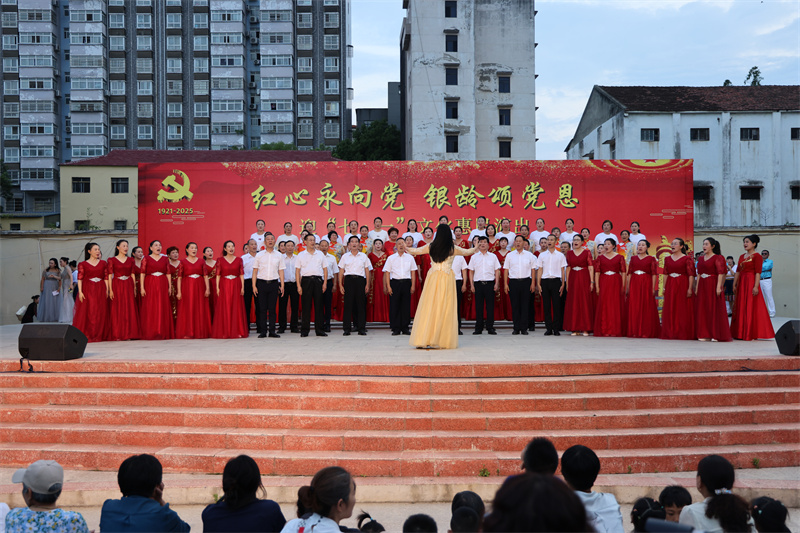 本网讯记者谢子恒通讯员董蕾 白涵报道:6月23日晚,宜城市委老干部局、市民政局、市妇联、市老年大学在紫盖山广场举办“红心永向党 银龄颂党恩”迎“七·一”文化惠民演出,为广大市民带来了一场视听盛宴。
