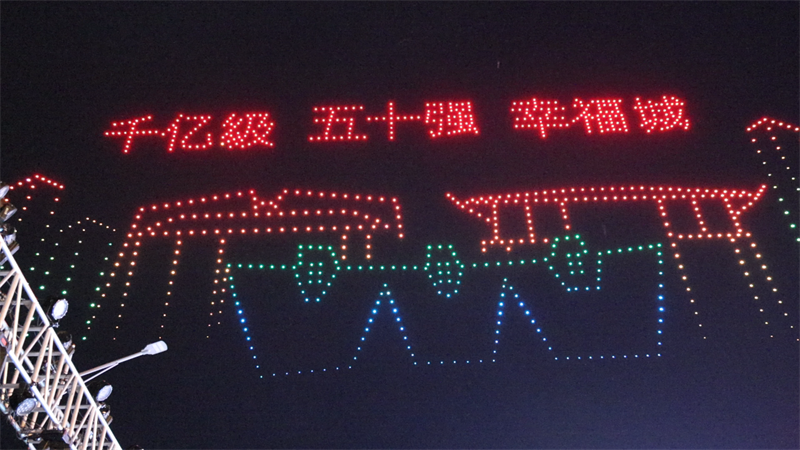活动在古典舞《橘颂》的精彩演绎中拉开序幕,襄阳花鼓戏《宋玉》、歌曲《恋襄阳》等一个个精彩节目轮番上演。千架无人机腾空而起,空中“作画”,将活动推向高潮。在一次次的翻滚列队中,无人机将楚皇城、宋玉、哪吒、孙悟空等经典图案以及“千亿级、五十强、幸福城”等文字生动地描绘在夜空中,彰显出现代科技与传统文化融合的巨大魅力。