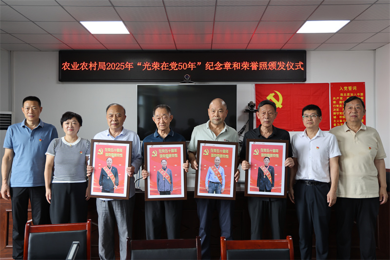 本网讯记者谢子恒 通讯员朱迪 郑涛报道:近日,宜城市委老干部局、市农业农村局联合举办“光荣在党五十年”纪念章和荣誉照颁发仪式,向为党和国家事业作出卓越贡献的老党员致以崇高敬意。