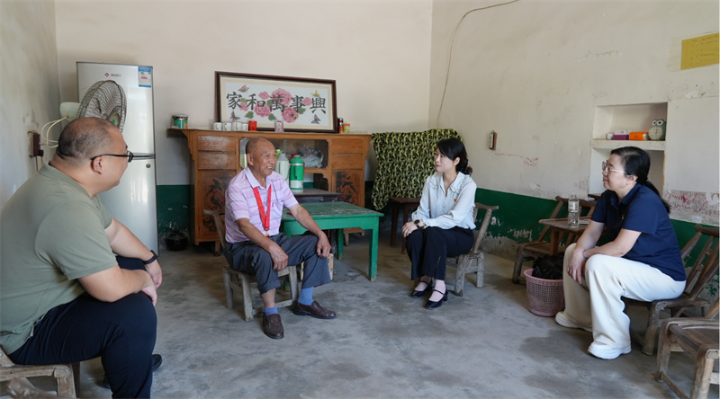 来到童梅村老党员李生元家中,蒙瑾、时瑜与他拉家常、忆往昔,关切询问身体状况和家庭生活情况,并向他颁发“光荣在党50年”纪念章。蒙瑾说,老党员是党的宝贵财富,是年轻一代党员干部学习的榜样和楷模,希望老人永葆对党忠诚的政治本色,用己所长、发挥余热,团结带动周边党员和群众积极关心支持参与当地建设。