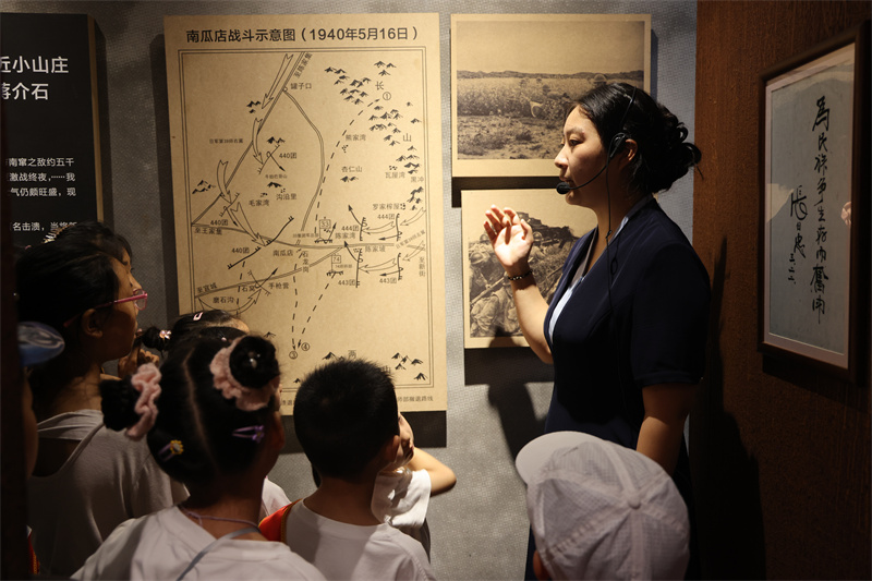 在张自忠将军纪念馆内,讲解员详细地为学生们讲述张自忠将军生平事迹,特别是他在抗日战争中展现出的英勇无畏和爱国精神。通过一件件珍贵的文物、一幅幅生动的历史图片以及多媒体展示,孩子们仿佛穿越时空,真切感受到那段波澜壮阔的峥嵘岁月。