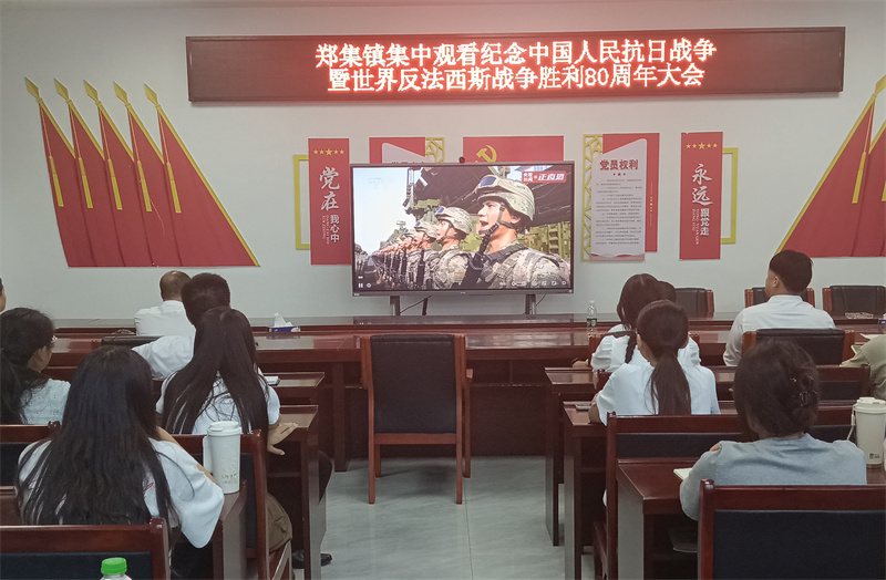 郑集镇组织全体机关干部、村(社区)集中观看纪念中国人民抗日战争暨世界反法西斯战争胜利80周年大会直播,共同回顾抗战历史,缅怀英烈功绩,传承红色基因。