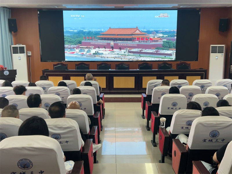 宜城三中组织全体师生集中观看纪念中国人民抗日战争暨世界反法西斯战争胜利80周年大会直播,共同回顾那段波澜壮阔的历史,深切感受中华民族不屈不挠、团结奋战的伟大精神。