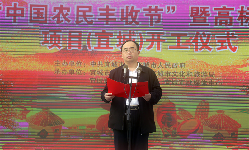 本网讯记者李勤 周波报道:秋风送爽,硕果飘香。9月24日,宜城市“庆农业丰收 享美好生活”2025年“中国农民丰收节”暨高标准农田建设项目开工仪式在鄢城街道木渠村文化活动广场举行,全市人民一道共庆丰收、共享喜悦、共商未来。市委书记武义泉致辞。市领导曾劲松、何海燕、付青峰、杨健健参加开工仪式。