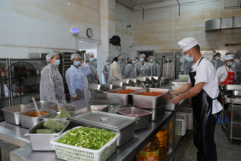 活动中,学校相关负责人从食材采购溯源、仓储管理、清洗消毒、加工制作、饭菜留样到窗口服务等各个环节,向与会代表们详细介绍食堂的整体运营情况,重点展示学校在落实食品安全主体责任、严格执行“明厨亮灶”要求、健全常态化自查机制等方面所采取的具体措施。