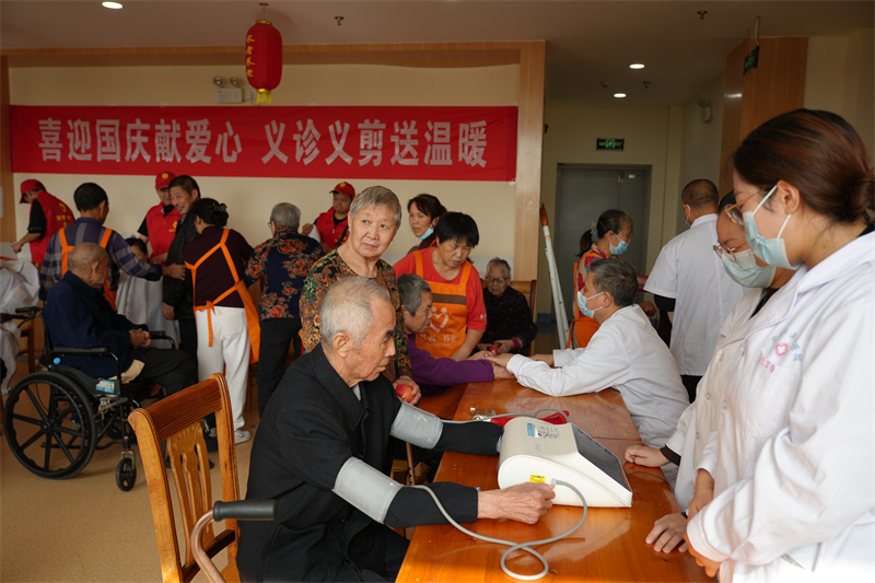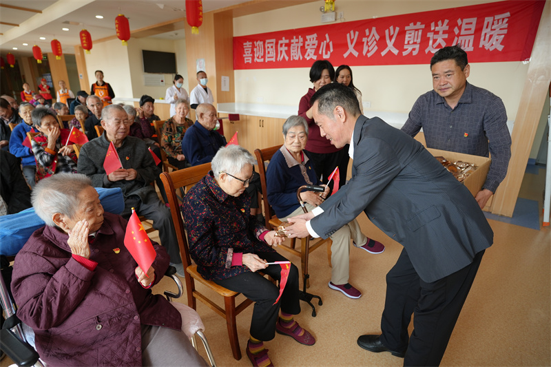 活动现场,党员志愿者与养老院的老党员们共同重温入党誓词,铿锵誓言回荡在温馨的院落中。医护志愿者为老人测量血压,讲解秋季保健知识,耐心解答各类健康疑问;理发师们则根据老人喜好,轻柔娴熟地修剪头发,让老人们精神焕发。市慈善总会和市关工委工作人员将月饼、水果等慰问品送到每位老人手中,关心问询他们的日常生活与身体状况。一句句真诚问候,一次次贴心陪伴,让整个养老院洋溢着温馨与感动。