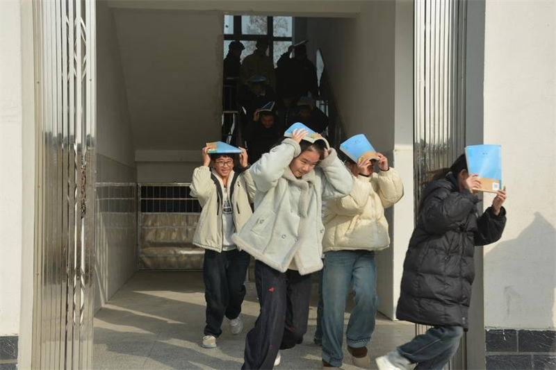 ÉÏÎç10ʱ£¬·ÀÕ𾯱¨ÏìÆð£¬Ê¦ÉúѸËÙ·´Ó¦£¬Á¢¼´¶×·üÔÚ¿Î×ÀÏ·½»ò³ÐÖØÇ½±ß£¬ÓÃÊé±¾±£»¤Í·²¿£¬Ñϸñ°´ÕÕ¡°·üµØ¡¢ÕÚµ²¡¢ÊÖ×¥ÀΡ±ÔÔò½øÐнô¼±±ÜÏÕ¡£´ý¡°Ç¿Õð¡±Ä£Äâ½áÊøºó£¬Ñ§ÉúÔÚÀÏʦºÍ°²È«Ô±µÄÒýµ¼Ï£¬ÍäÑü»¤Í·£¬ÑØÔ¤¶¨Â·Ïß¿ìËÙ¡¢ÓÐÐò³·ÀëÖÁ²Ù³¡°²È«ÇøÓò¡£°àÖ÷ÈÎËæ¼´ÇåµãÈËÊý£¬È·±£È«Ô±µ½Î»¡£Õû¸öÊèÉ¢¹ý³Ì½öÓÃʱ1·Ö43Ã룬×éÖ¯ÑÏÃÜ¡¢Ðж¯¸ßЧ£¬Õ¹ÏÖÁËʦÉúÁ¼ºÃµÄÓ¦¼±ËØÖÊ¡£