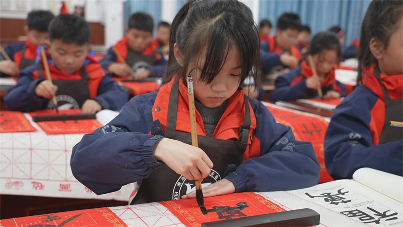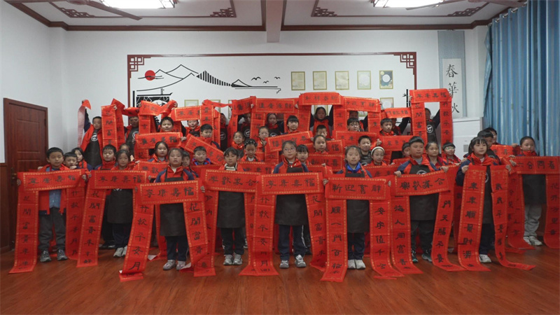 正是依托这样专业的平台,学校设计推出“6小时零基础学写春联”的特色体验活动。令人惊讶的是,这个看似“不可能的任务”,却取得意想不到的效果,点燃众多孩子的书法热情。