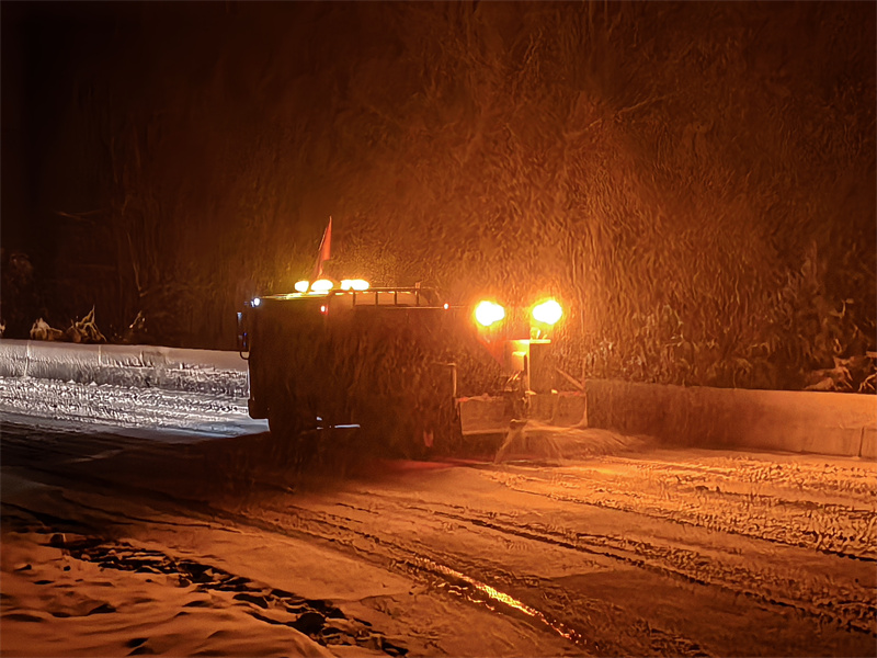 市公路局科学研判雪情,重点针对桥梁、急弯、陡坡、背阴路段等易结冰部位,优先保障主干线与交通要道安全通行。应急队伍快速集结,调配融雪剂撒布车、巡查车等设备,装载足量融雪盐等物资,分批赶赴各重点路段展开作业。