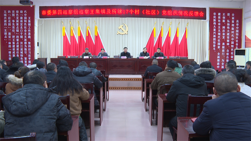 巡察组主要负责人向王集镇反馈巡察意见并提出巡察整改工作建议,市委巡察工作领导小组成员传达市委书记武义泉在听取巡察组工作情况汇报时的讲话精神并提出整改要求,王集镇党委主要负责人作表态发言。
