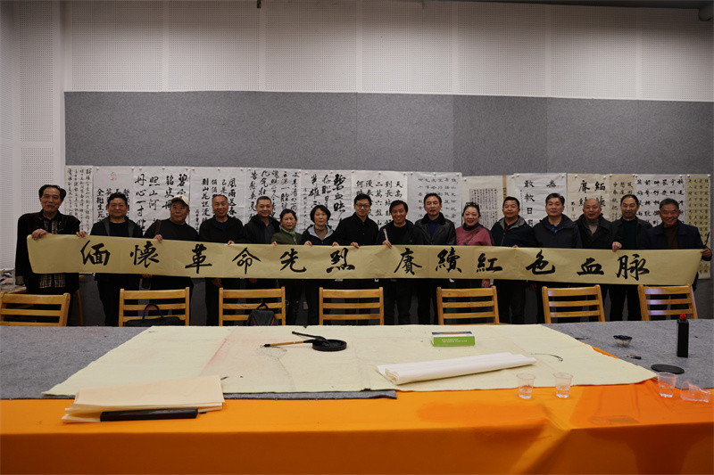 ÖµµÃÒ»ÌáµÄÊÇ£¬12λÊé·¨¼ÒÏÖ³¡ÁªñǻӺÁ£¬¹²Í¬Êéд¡°Ã廳¸ïÃüÏÈÁÒ£¬âÙÐøºìɫѪÂö¡±Ö÷Ìⳤ¾í×÷Æ·¡£±Ê·æÁ÷ת¼ä£¬½«ºìÉ«¾«ÉñÓëÊé·¨ÒÕÊõÍêÃÀÈںϣ¬Ó®µÃ¹ÛÖÚÕóÕóÕÆÉù¡£