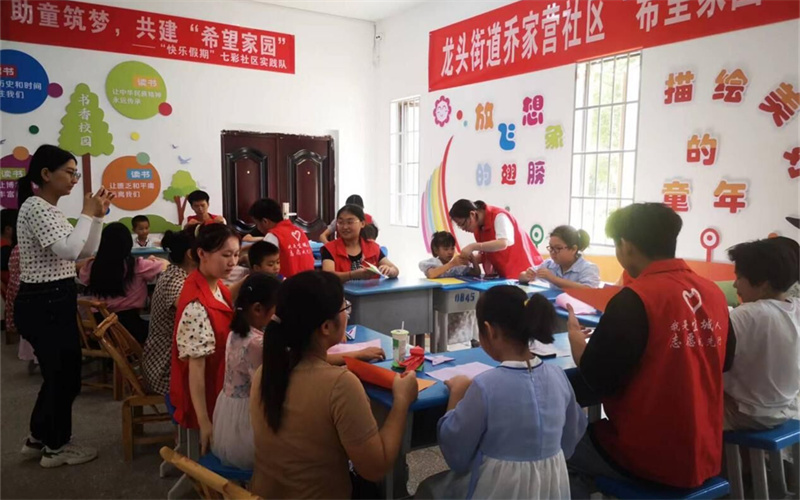 李兰兰 李一鑫报道:为解决留守儿童、双职工家庭、外来务工人员子女暑期无人看管难题,近日,龙头办事处通过招募大学生志愿者,在乔家营社区开办了暑期希望家园,提供公益性社区托管服务,帮助这些孩子度过一个安全、健康、文明、充实的暑假。