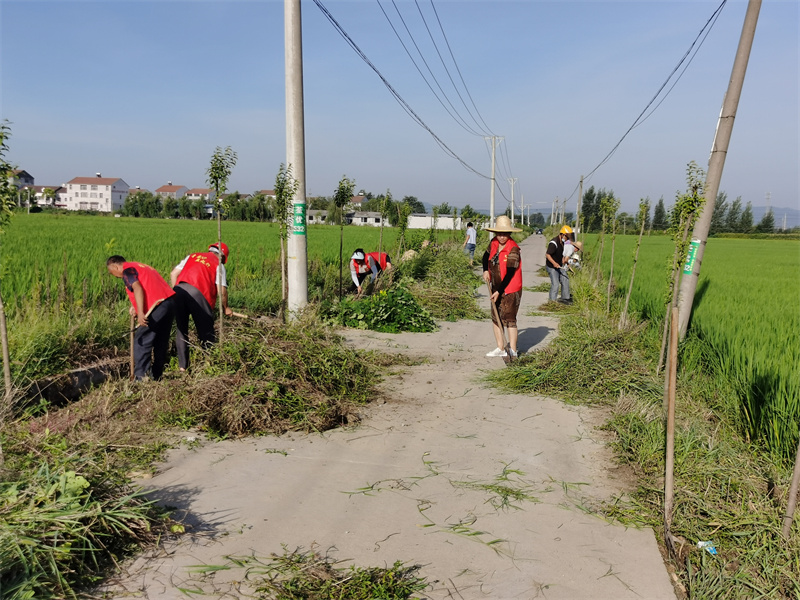 报道: 8月13日上午,天气虽然炎热,而在郑集镇金铺村7组路边,38个村民和18名村组干部一起,手拿镰刀和铁锹,铲除房前屋后杂草及路边垃圾等附作物,为即将开展的下水道整修工程做准备。