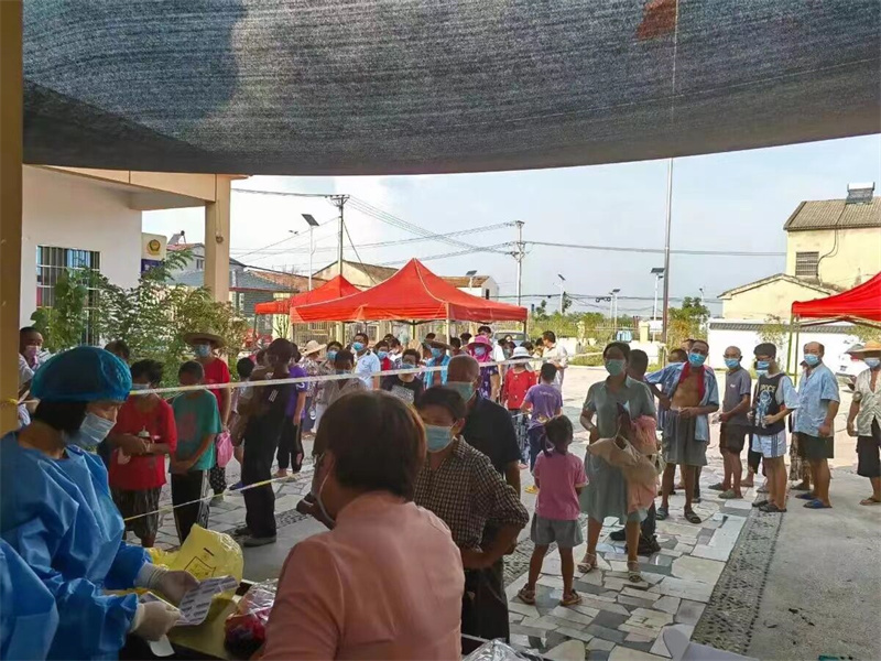 合理高效准备。上午11时30分,全镇近300名镇、村、组干部及15个村(社区)新时代文明实践站志愿服务队不找理由、全部下沉、合理安排、精准落实。为应对高温酷暑天气,合理划分采样点。廖河村改变以前文化广场集中采样模式,根据10个村民小组的地理位置,将村委会会议室、涵洞、空厂房以及大片树荫地作为几个集中采样点,尽最大努力给居民群众提供避暑降温的采样环境。下午3点左右,全镇各村(社区)加上企业,共16个采样点,设置1米间隔线、警戒线,口罩、消毒液等防疫物资,采样医务人员、信息录入员、秩序维护员全部到位,为核酸检测工作安全、高效开展,做好了充足准备。