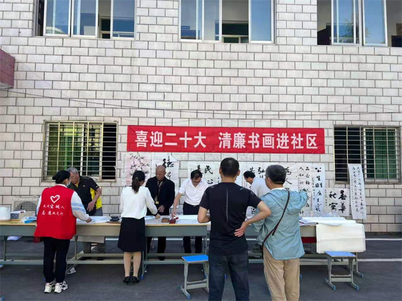 本网讯通讯员陈玲报道:9月29日上午,鄢城办事处望江路社区开展“喜迎二十大 清廉书画进社区”活动。