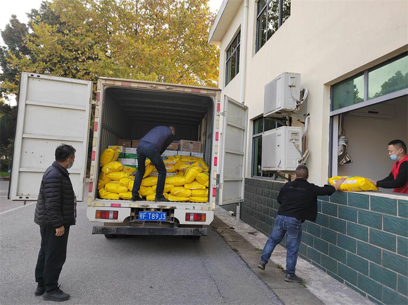 当天下午,南营街道办事处干部将捐赠的生活物质送达锦苑小区,与社区工作人员、值守民警共同卸装、分发。