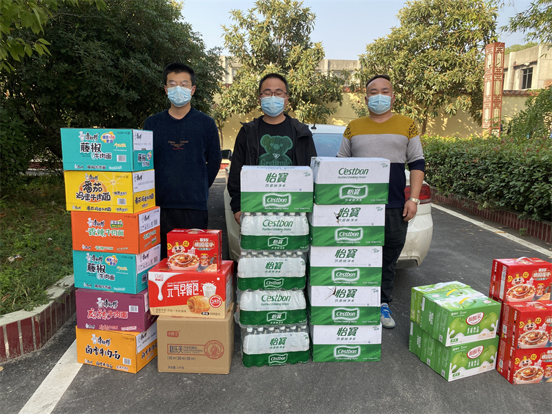 退役军人徐忠涛是小河镇家家福超市负责人,当天,他为小河镇疫情防控一线人员送去纯净水、方便面、牛奶等物资,感谢他们的辛勤付出。