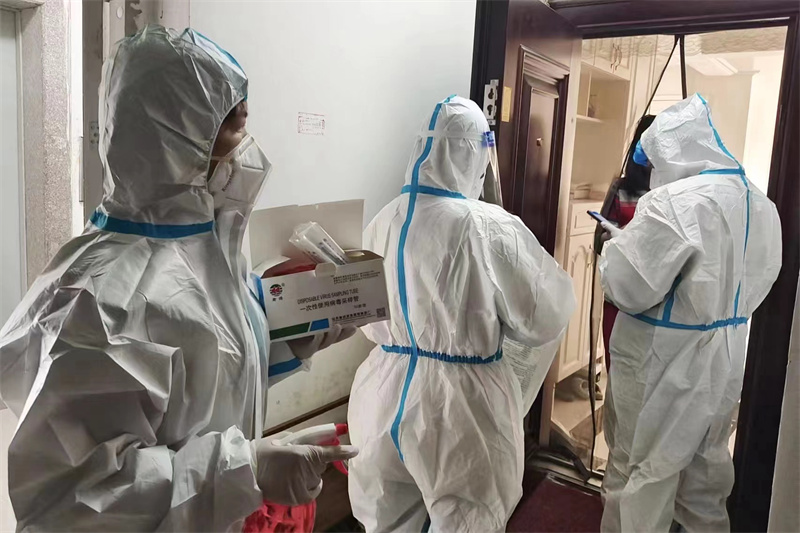 罗海英作为学校的党员先锋,在得知封控楼栋需要志愿者入户进行核酸检测时,她主动请缨,毅然穿起了笨重的防护服,爬上了二十层的高楼,敲开了一百多家铁门,录入了几百人的信息,与医护人员一起奋战,将重点人群的核酸检测最短时间送到检测中心,为学校竖起了一面鲜亮的旗帜,让党旗飘扬在抗“疫”一线。