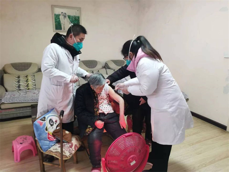 为更好更快推进老年人的疫苗接种工作,镇村干部与卫生院医护人员持续开展入户走访工作,为符合条件的老年人接种新冠疫苗,将现场问诊、禁忌评估、现场接种等"一站式"服务送到老年人家门口,为老年群体提供更加便捷贴心、科学精准的服务。