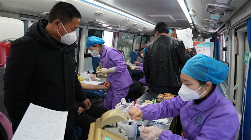 本网讯记者刘毅 钟军 通讯员张鸣报道:1月5日,襄阳市中心血站流动采血车驶入板桥店镇政府,该镇200多名党员干部积极参与无偿献血,奉献自己的一份爱心。