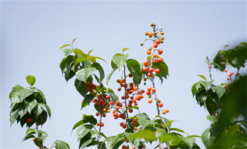 当天上午,在樱桃采摘园记者看到,早熟的樱桃已经泛起了一层淡淡的红色,犹如一颗颗红玛瑙挂在枝头,散发出淡淡果香,游客们采摘着饱满成熟的樱桃,品尝着甜蜜的果实,拍照留念采摘的美好时光。