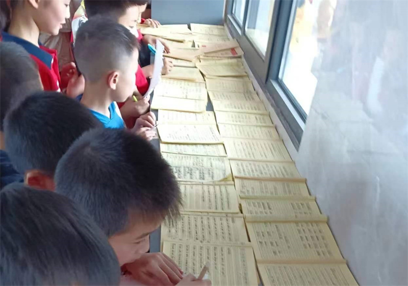 同学们认真地观看着参展的作业,不时发出啧啧的赞叹声;还有的同学一边看,还一边在自己的本子上记下优秀同学的名字。当老师问及他为何这么做时,他笑脸洋溢的说道“今天的活动给我留下了深刻的印象,我要以这些优秀同学为榜样,把字写工整、美观,还要把他们的名字写进我的观后感里去,不断激励我养成良好学习习惯!”