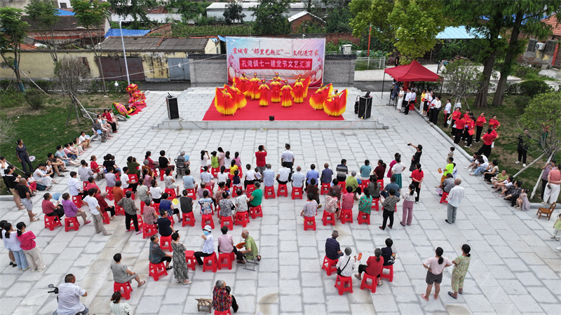 本网讯记者郑潘 通讯员李方方报道:6月30日晚,孔湾镇在镇政府大院举行庆“七一”文艺汇演,与市民群众一起回顾中国共产党走过的光辉历程,共同庆祝党的104岁生日。