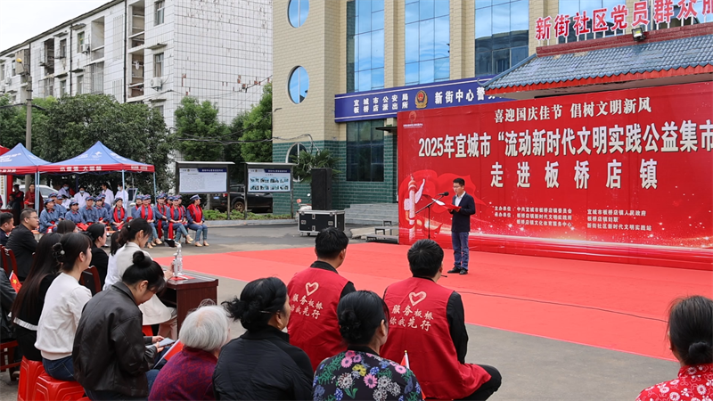 本网讯记者刘毅 通讯员黄晓芸报道:9月24日,板桥店镇举办“喜迎国庆佳节 倡树文明新风”文艺汇演暨“流动新时代文明实践公益集市”活动,以群众喜闻乐见的形式弘扬爱国主义精神,推进移风易俗,营造欢乐祥和、奋发向上的节日氛围。