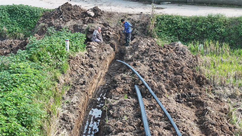 ÔÚÀ׺ÓÕòǰ·æ´å¡¢ÐºӴåÊ©¹¤ÏÖ³¡£¬ÍÚ¾ò»ú»ÓÎ賤±Û¿ªÍÚ×ÔÀ´Ë®¹ÜÍø¹µ²Û£¬¹¤ÈËÃÇ·Ö¹¤Ð×÷£¬ÓÐÐò½øÐйܵÀ¶Ô½Ó¡¢Æ´×°ÓëÖÊÁ¿¼ì²é£¬È·±£Ã¿Ò»¸öÁ¬½Óµã½ôÃÜÎÞ·ì¡£Ëæ×Ź¤³ÌÍÆ½ø£¬Ò»¸ù¸ùÕ¸ÐÂË®¹Ü±»ÆÌÉèÖÁ¹µ²ÛÖУ¬ÎªºóÐøÎȶ¨¹©Ë®´òϼáʵ»ù´¡¡£