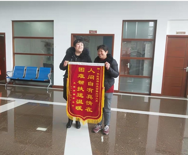 本网讯通讯员张晓慧报道:2月18日上午,光彩大市场居民彭先竹女士将一面"人间自有真情在。困难帮扶送温暖"的锦旗送到宋玉社区党委书记尚俊的手中,感谢社区对自己一家人的关心帮助。