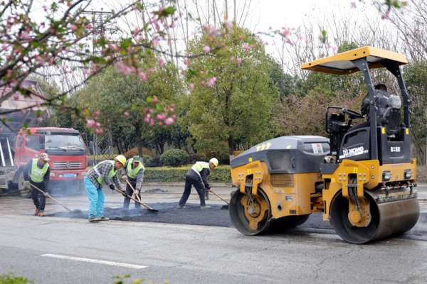 3月19日,记者在随南路看到,原本破损的路面已被清除,浇筑了混凝土,市政工人正在铺设沥青,压路机来回碾压,一派热火朝天的施工景象。