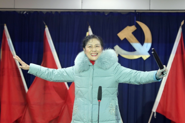活动现场,新时代文明实践中心宣讲员乔新美将全会精神编写成襄河道坠子曲艺作品,以曲艺形式,饱含深情地说唱着。一段段欢快的短句,将"十三五"丰硕成果、"十四五"美好未来,生动地展现在群众眼前。