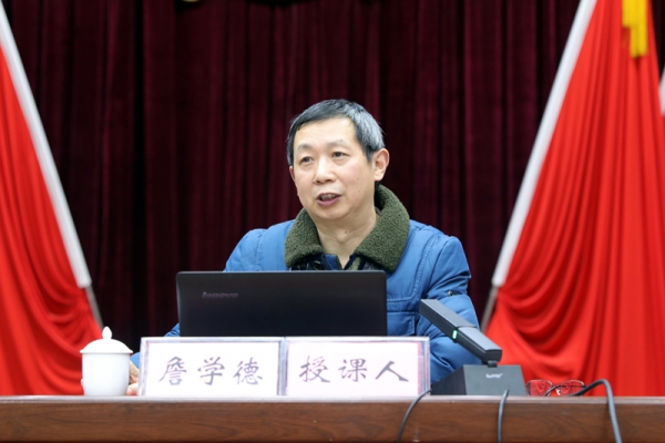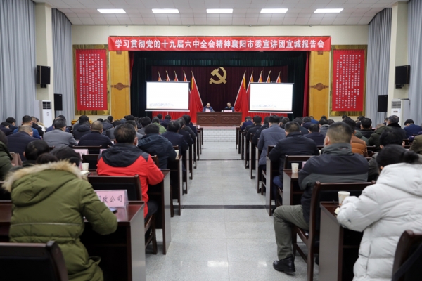 襄阳市委宣讲团成员、湖北文理学院教授詹学德作专题辅导报告。詹学德以《不忘初心牢记使命走好新的赶考之路》为题,从党的十九届六中全会整体概况、全会召开的重大意义、全会重要内容和如何学习贯彻好全会精神四个方面作深入浅出的讲解。